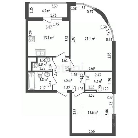 • ✅ Минимальная площадь: 39,1 м²