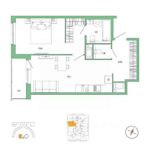 В квартире сделан ремонт, все чисто, стильно и аккуратно. Не требует никаких вложений. Бонусом идёт утепленная лоджия, на которой стоит небольшой диван, который можно использовать, как дополнительное спальное место. Установлен кондиционер. Остается кухонный гарнитур со встроенной техникой, стенка в комнате.