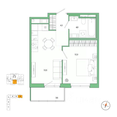 В продаже просторная однокомнатная квартира с отличной планировкой.