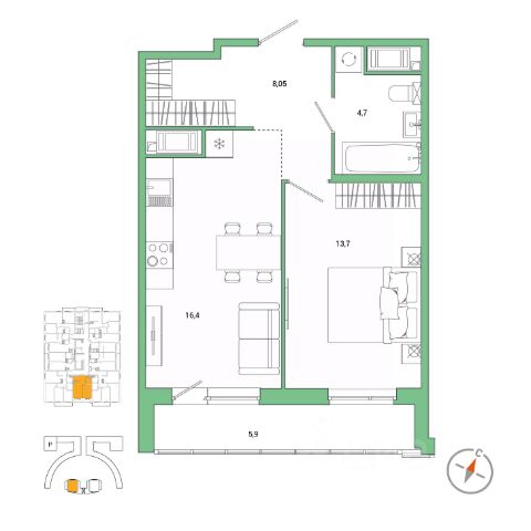 Продается просторная 1-комнатная квартира от застройщика в жилом комплексе "Бионика Заповедная" в динамичном Приморском районе. До метро можно добраться на транспорте всего за 11 минут. Удобная, классическая планировка, кухня 10.8 м², просторная прихожая 4.53 м². Общая площадь квартиры - 36.32 м², жилая 17.13 м², высота потолка 2.77 м. Квартира продается с отделкой "Норд Лайн светлый плюс". Что особенного в ЖК "Бионика Заповедная"? • Оазис в городе 3 минуты пешком до Новоорловского заказника (140 ГА) • Захватывающие виды из окон на хвойный лесопарк • Всесезонный "Заповедный парк" во дворе площадью 23000 кв.м. • 5 единых входных групп с авторским дизайном и лаундж-зонами, сити-виллы на первых этажах с палисадниками и высотой потолков до 4 м • Места притяжения: фонтан "Бионика", спортивный кластер со скейт-парком, фотозоны с арт-объектами