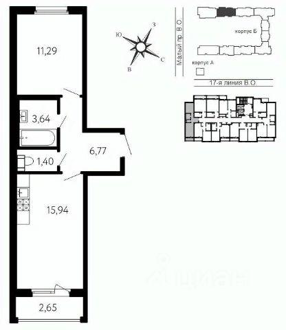 1-комн. квартира от застройщика в Клубный квартал "Ассамблея" на 6 этаже. Квартира без отделки, после получения ключей можно делать ремонт. Общая площадь: 42.48 кв.м., жилая: 15.23 кв.м., площадь просторной кухни-столовой: 16.77 кв.м. Все окна выходят на одну сторону. В квартире одна лоджия, один совмещенный санузел. Высота потолков 3.0 м.