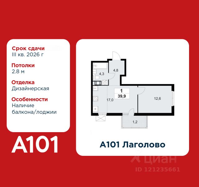 1-комнатная квартира площадью 45.10 в ЖК "А101 Лаголово" c лоджией на 7 этаже. Квартира с отделкой. Вид из окна во двор. В квартире 1 санузел. Высота потолков 2.8 м. Ключи в 2025 году. Предложения от застройщика на октябрь 2025: - Гибкая рассрочка 20 000 руб/мес. и первым взносом 10%. ОТДЕЛКА Для квартир с чистовой отделкой предлагается три варианта дизайна: Классика, Карелия светлая и Карелия темная. Варианты всех дизайнерских решений представлены на фотографиях. Подробности можно уточнить у менеджера. На все отделочные работы от застройщика предоставляется гарантия. ОСОБЕННОСТИ ПЛАНИРОВКИ Глубокая лоджия от 1,4м позволяет организовать отдельный кабинет, мастерскую или зимний сад с лаундж-зоной. ПАРАДНАЯ В каждой парадной предусмотрены места для хранения велосипедов и колясок, гостевой санузел, лапамойка (место для мытья домашних животных или колес велосипедов) и удобная зона ожидания для гостей. ДВОРЫ И ОКРУЖЕНИЕ Просторные дворы свободны от машин и закрыты от посторонних. Большую часть комплекса займут благоустроенные зелёные зоны, теневые сады и городские общественные пространства с развитой тротуарной сетью и велодорожками. Каждый дом оборудован системами видеонаблюдения и контроля доступа. "А101 Лаголово" - современный город у подножия знаменитых Дудерговских высот, в объятиях чистейших озёр и зелёных живописных массивов, наполненный всем необходимым для счастливой жизни. ИНФРАСТРУКТУРА. Мы занимаемся комплексным освоением территории. Наш приоритет - доступность всех сервисов для счастливой жизни. 1. Лаголово-город 15-ти минутной доступности. Вся необходимая инфраструктура: магазины, салоны красоты, образовательные учреждения, медицинские центры находятся в 15-ти минутах пешей прогулки от любой точки жилого комплекса. Это позволяет не тратить время на долгие перемещения. 2. Представьте идеальный город, где ребенок может спокойно играть, а пожилой человек наслаждаться заслуженным отдыхом. Жилая среда нашего комплекса может комфортно использоваться как 8-летним ребенком, так и 80-летним пожилым человеком. Дома, улицы, общественные пространства, тротуары спроектированы с заботой о людях разных возрастов. 3. Мы активно развиваем авторскую образовательную экосистему "Лёрнити". Она включает строительство 8 современных детских садов (2000 мест) и 3 школ (2945 учащихся). Мы учим родителей гармонично общаться с детьми, помогаем малышам подготовиться к школе, а подросткам - выбрать будущую профессию и развить таланты. Не хватает средств на покупку кладового помещения? Оформите ипотеку на квартиру и добавьте к ней часть стоимости кладовой. ЗАСТРОЙЩИК ГК "А101" - крупный инвестиционно-строительный холдинг, занимает 6-е место по объему строительства в России (по данным "Единого ресурса застройщиков" на 2023 год). НКР присвоило ГК "А101" кредитный рейтинг A+.ru, подтверждая его надежность и финансовую устойчивость для завершения строительства ЖК.