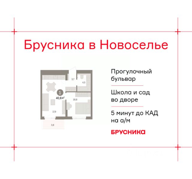 Просторная 1-комн. квартира с предчистовой отделкой в ЖК "Брусника в Новоселье" на 7 этаже. Общая площадь: 40.63 кв.м., жилая: 10.8 кв.м., площадь просторной кухни-столовой: 17.9 кв.м. Все окна выходят на одну сторону. В квартире один балкон, один совмещенный санузел. Высота потолков 2.7 м.