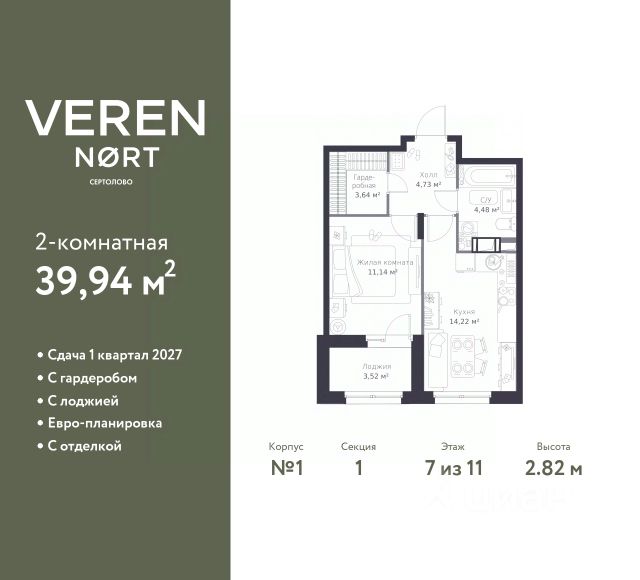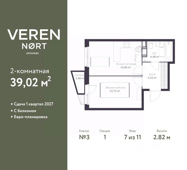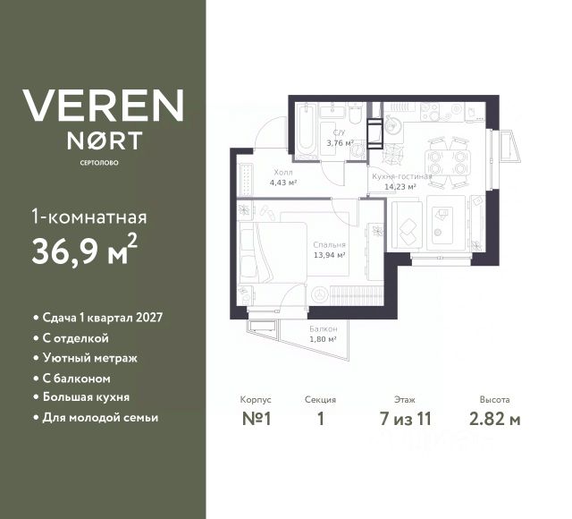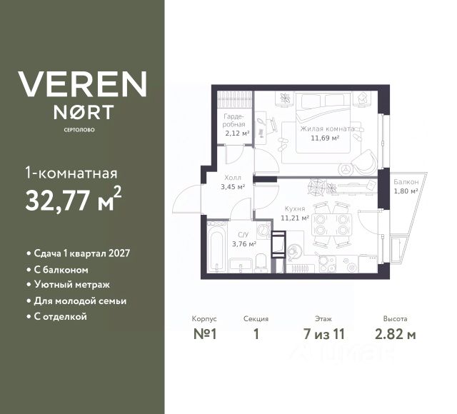 • ✓ В базе Циан 83 1-комнатных квартир на 7 этаже в Сертолово