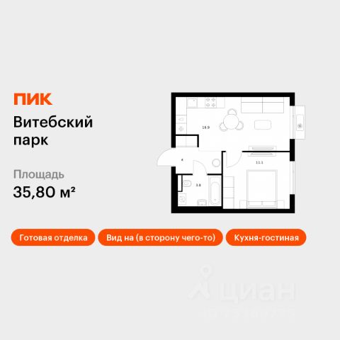 Продаётся 1-комн. квартира площадью 33,9 кв.м на 7 этаже 12 этажного дома (Корпус 6, Секция 1) проекта ПИК Витебский парк. Светлый просторный подъезд на уровне земли, функциональная планировка, большие окна, предчистовая отделка. Жилой квартал "Витебский парк" находится во Фрунзенском районе Санкт-Петербурга, в 15 минутах пешком от метро "Обводный канал". А в 2027 году всего в паре минут от проекта планируют открыть станцию метро "Боровая". В квартал входят 3 детских сада, школа и 7 жилых домов с дворами-парками, куда не могут зайти посторонние люди и заехать автомобили. Школа на 1250 мест и детский сад на 350 мест откроются одновременно с заселением первой очереди, это значит, что жители проекта смогут отдать своих детей в новые образовательные учреждения на территории квартала. Во дворах приятно отдыхать, знакомиться с соседями и даже заниматься йогой, а для детей мы построим детские площадки. Рядом появятся современные спортивные площадки. На первых этажах домов откроются магазины, кафе и другие сервисы. Через весь жилой район протянется широкий пешеходный бульвар для прогулок и спорта. Рядом с "Витебским парком" есть всё для комфортной жизни: магазины, торговые центры, фитнес-клубы, кафе и рестораны, а ещё детские сады, школы, вузы и поликлиника. Артикул 1005147 (Застройщик ООО "СЗ "Лиговский Сити") [cn_sbp_1813638]