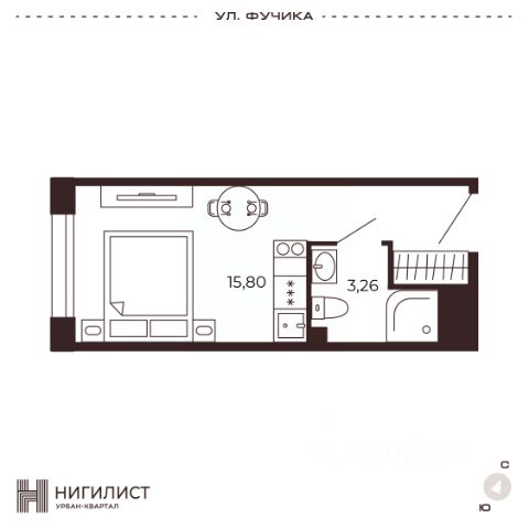 - Просторная комната 17.8 кв.м. с панорамным окном и эргономичной нишей, что позволяет удачно зонировать пространство под собственные потребности. Соседние дома ниже и расположены на комфортном расстоянии не окна в окна. Также покупателя порадует наличие кладового шкафа в коридоре, который можно переоборудовать в гардеробную.
