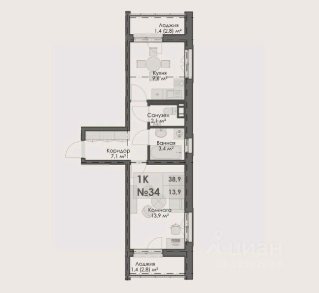 • Уютный балкон, готовый к вашему оформлению.