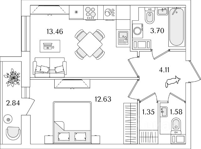 Продается 1-комн. квартира с предчистовой отделкой в ЖК "Брусника в Новоселье" на 7 этаже. Общая площадь: 46.93 кв.м., жилая: 13.5 кв.м., площадь просторной кухни-столовой: 21.2 кв.м. Все окна выходят на одну сторону. В квартире один балкон, один совмещенный санузел. Высота потолков 2.7 м.