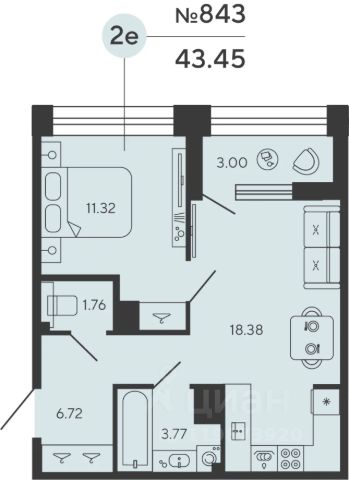 просторная кухня-гостиная 17,6 м² — сердце квартиры, где легко разместится обеденная зона, диван, медиа-зона;