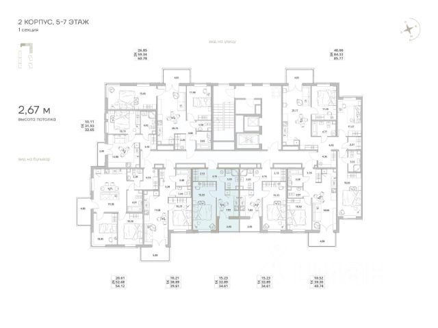 Дом монолитный, трехподъездный, переменной этажности, от 8 до 9 этажей. Квартира находится во 2-й секции высотой 8 этажей в корпусе 3. На этаже 8 квартир. В подъезде 1 пассажирский и 1 грузовой лифт. Окончание строительства - 2 квартал 2027 года. Оформление сделки по договору долевого участия.