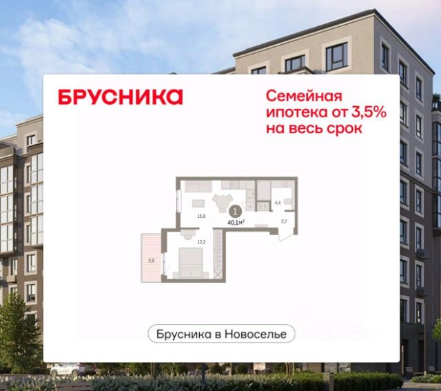 Продается 1-комн. квартира с предчистовой отделкой в ЖК "Брусника в Новоселье" на 7 этаже. Общая площадь: 40.05 кв.м., жилая: 12.2 кв.м., площадь просторной кухни-столовой: 15.8 кв.м. Все окна выходят на одну сторону. В квартире один балкон, один совмещенный санузел. Высота потолков 2.7 м.