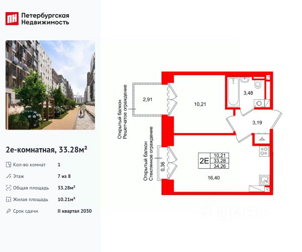 Квартира в новом, современном ЖК Палацио (класс бизнес). Общая площадь 28,48м2 , втч лоджия 4,38м2.