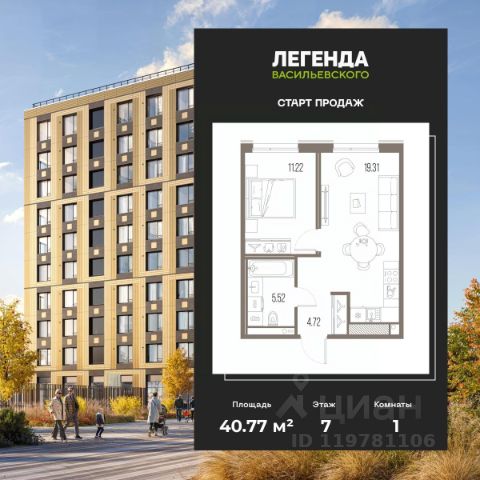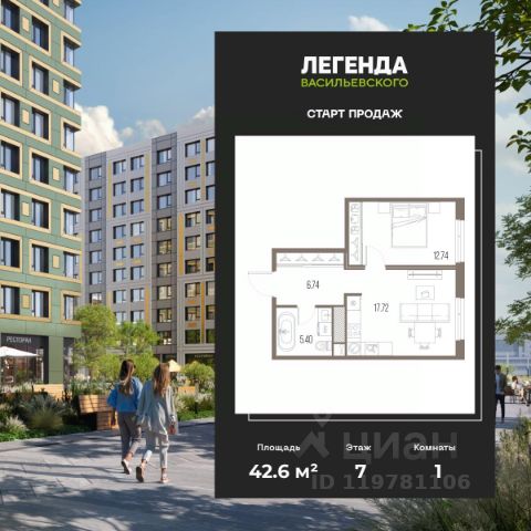 1-комн. квартира от застройщика с предчистовой отделкой в ЖК "ЛЕГЕНДА Васильевского" на 7 этаже. Общая площадь: 36.17 кв.м. Высота потолков 2.72 м. "ЛЕГЕНДА Васильевского" жилой квартал в минутной доступности от Финского залива, главного креативного хаба Санкт-Петербурга Севкабель Порта и других точек притяжения. Современные инженерные и технические решения, повышающие качество жизни TechnoBox включают в себя: стационарный и удаленный контроль дома, систему вентиляции Air Design - здоровое дыхание без лишнего шума, мультисервисную сеть, объединяющую коммуникационные системы, удаленное управление электроприборами, контроль отопления в каждом помещении, поддерживающий оптимальный температурный баланс во время "холодного" периода", датчики протечки, датчик открытия входной двери. Мультисервисная сеть (МСС) объединяет ключевые слаботочные системы дома, задавая им единый высокий стандарт работы, обеспечивая надёжность их функционирования и управления. Квартира готова к декорированию. Застройщиком сделана шумоизоляция; стены подготовлены для отделки; проведена электрика с учетом рекомендаций по расстановке мебели и бытовой техники; выровнен пол. В каждой квартире установлена взломостойкая входная дверь, окна со специальным термоизолированным алюминиевым профилем. Двор жилого комплекса "ЛЕГЕНДА Васильевского" закрыт. Проект состоит из шести разноформатных корпусов с ритмичными фасадами в духе пост-конструктивизма. Геометрия жилого комплекса состоит из четко простроенных осей, чередующих открытые пространства и объемы корпусов, каждый из которых обладает своим визуальным кодом индивидуальным рисунком фасада и цветовой палитрой. Корпуса образуют периметр с общественными пространствами: площадью с кафе, магазинами и пешеходным променадом с детскими игровыми хабами, местами для спокойного отдыха и workout-зоной. На территории комплекса предусмотрены теплый подземный паркинг и два наземных 4-х этажных паркинга.