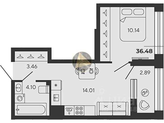 просторная кухня-гостиная 17,6 м² — сердце квартиры, где легко разместится обеденная зона, диван, медиа-зона;