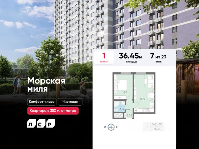 Продается 1-комнатная квартира в ЖК "Морская миля" на 7 этаже. Общая площадь составляет 36.48 кв. м. Квартира с чистовой отделкой. Жилой комплекс "Морская миля" располагается по адресу Санкт-Петербург, Красносельский. Морская миля - жилой комплекс в Красносельском районе Санкт-Петербурга. Расположение комплекса - его главное преимущество: близость к таким историческим памятникам и местам, как Петергоф, Павловский дворец и Царское село позволяет в любой момент насладиться красотами культурной столицы России. Расположение: - всего 350 м до новой станции метро "Юго-Западная"; - 20 минут до Петергофа на автомобиле; - 20 минут до аэропорта "Пулково" на автомобиле; - 30 минут до Царского села на автомобиле. Между корпусами расположены спортивные и детские площадки, пешеходный бульвар. В квартире выполнена полная отделка "Comfort Wood" из качественных материалов: прочный ламинат цвета благородного дуба, фактурные белые обои, керамическая плитка в ванной. Вход в парадные расположен на уровне земли и создает доступную среду для пожилых людей, людей с ограниченными возможностями и мам с колясками. На этажах и в подвале есть кладовые, которые позволят освободить пространство квартиры от лишних вещей. Первые этажи отведены под магазины и колясочные. На территории комплекса находятся наземные паркинги, гостевые парковки, детский сад, школа. В пешей доступности расположены магазины, кафе, аптеки и прочие удобства, необходимые для спокойной и комфортной жизни. Во дворах устроены пешеходные зоны, дворы озеленены и благоустроены: имеются тенистые аллеи, уютные зоны для отдыха детей и взрослых, а также стильные плей-хабы. Преимущества: - Станция метро в пешей доступности - Пешеходный бульвар - Близость к памятникам культуры и архитектуры - Школа и детский сад во дворе - Доступная среда Успейте приобрести квартиру на выгодных условиях! Чтобы узнать подробности, обращайтесь за консультацией по телефону.