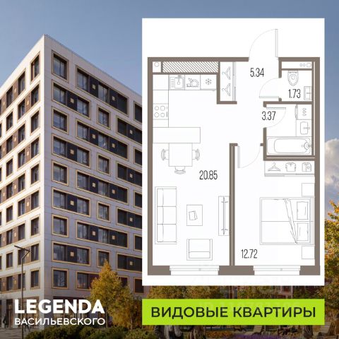 1-КОМНАТНАЯ ЕВРОПЛАНИРОВКИ В ЖК "IMPERIAL CLUB"