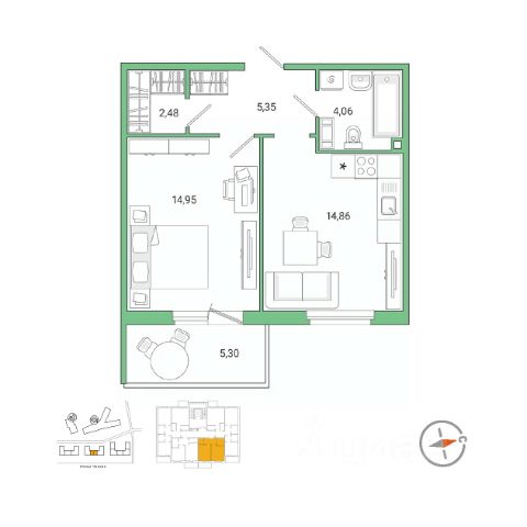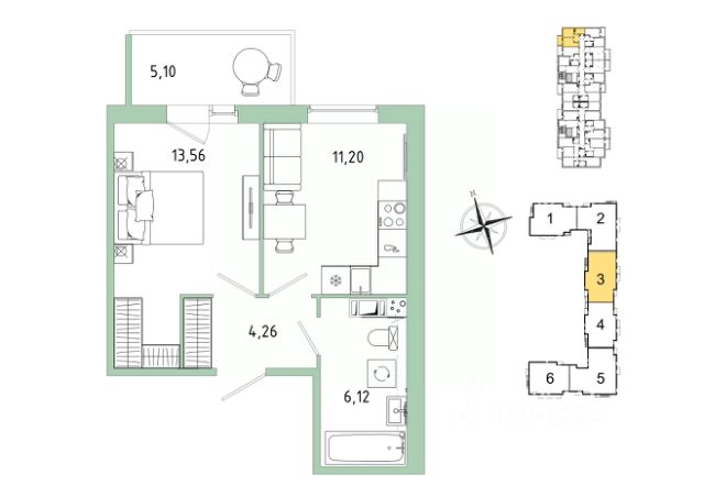 Продаётся 1-комнатная квартира в строящемся доме (Квартал 1, участок 6), срок сдачи: IV-кв. 2027, общей площадью 31.26 кв.м., на 8 этаже. Жилой комплекс "IQ Гатчина" расположен на въезде в Гатчину, неподалеку от г. Санкт-Петербурга. Расстояние до КАД - 24 км, возможен проезд на личной автомашине в центр Санкт-Петербурга по Пулковскому шоссе. Всего в 400 метрах от комплекса находится ж/д станция "Татьянино", с которой ходят электрички до Балтийского вокзала, время в пути - 50 минут. Можно добраться от метро "Московская" на маршрутном такси К100А, К11, К18.