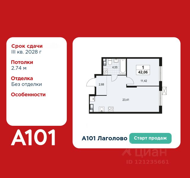 Старт продаж! 1-комнатная квартира площадью 36.30 в ЖК "А101 Лаголово" на 8 этаже. Квартира без отделки. Вид из окна на улицу. В квартире 1 санузел. Высота потолков 2.74 м. Предложения от застройщика на декабрь 2025: - Гибкая рассрочка 20 000 руб/мес. и первым взносом 10%. ОТДЕЛКА Квартира передается без отделки. Благодаря тому, что в данном типе отделки стены не возводятся, вы сможете создать удобную планировку и самостоятельно организовать зонирование комнат. ОСОБЕННОСТИ ПЛАНИРОВКИ Из окон квартиры открывается живописный вид на зелёный пешеходный бульвар, который строится одновременно с домами. ПАРАДНАЯ. В каждой парадной предусмотрены места для хранения велосипедов и колясок, гостевой санузел и удобная зона ожидания для гостей. ДВОРЫ И ОКРУЖЕНИЕ. Просторные дворы безопасны для детей, так как свободны от машин, закрыты от посторонних и постоянно находятся под видеонаблюдением. Во дворах создается разнообразная среда для детей всех возрастов: детские площадки с батутами, тактильными дорожками и игровыми комплексами. Для активного отдыха - воркаут-площадки, столы для пинг-понга и газоны для занятий йогой. Во дворах есть и тихие уголки - зеленые гостиные с уличной мебелью, где можно поработать на свежем воздухе или отдохнуть в тишине. Из внутренних дворов комплекса можно выйти на пешеходный бульвар длиной около 900 метров. Здесь будет организовано полноценное общественное пространство с амфитеатром, уличным кафе, ручьем, фонтаном и множеством мест для отдыха и игр. Большую часть бульвара займут благоустроенные зеленые зоны и теневые сады из десятков видов деревьев и кустарников, многолетних цветов и трав, которые будут радовать глаз круглый год. "А101 Лаголово" - современный город у подножия знаменитых Дудерговских высот, в объятиях чистейших озер и зеленых живописных массивов, наполненный всем необходимым для счастливой жизни. ИНФРАСТРУКТУРА. Мы занимаемся комплексным освоением территории. Наш приоритет - доступность всех сервисов для счастливой жизни. 1. Лаголово-город 15-ти минутной доступности. Вся необходимая инфраструктура: магазины, салоны красоты, образовательные учреждения, медицинские центры находятся в 15-ти минутах пешей прогулки от любой точки жилого комплекса. Это позволяет не тратить время на долгие перемещения. 2. Представьте идеальный город, где ребенок может спокойно играть, а пожилой человек наслаждаться заслуженным отдыхом. Жилая среда нашего комплекса может комфортно использоваться как 8-летним ребенком, так и 80-летним пожилым человеком. Дома, улицы, общественные пространства, тротуары спроектированы с заботой о людях разных возрастов. 3. Мы активно развиваем авторскую образовательную экосистему "Лёрнити". Она включает строительство 8 современных детских садов (2000 мест) и 3 школ (2945 учащихся). Мы учим родителей гармонично общаться с детьми, помогаем малышам подготовиться к школе, а подросткам - выбрать будущую профессию и развить таланты. Не хватает средств на покупку кладового помещения? Оформите ипотеку на