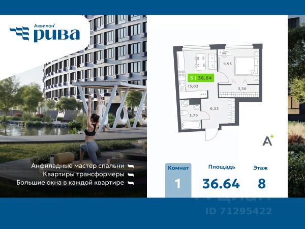 Цена действует при 100% оплате и на определенные ипотечные программы. Подробности — в отделе продаж по телефону. Продаётся 1-комнатная квартира в ЖК "Ручьи" на 8 этаже. Общая площадь составляет 34.40 кв. м. Квартира с чистовой отделкой. Жилой комплекс "Ручьи" располагается по адресу Санкт-Петербург, Красногвардейский. ЖК "Ручьи" - крупный проект комфорт-класса в Красногвардейском районе, на Пискаревском проспекте. В новостройке эргономичные планировки, уютные пешеходные дворы без машин, с детскими и спортивными площадками. Расположение комплекса: • 10 минут до станции метро "Академическая" на автобусе; • 10 минут до ж/д станции "Ручьи"; • 5 минут до КАД на автомобиле. Первая очередь уже заселена, во второй очереди появятся 27 домов. Квартиры передаются с отделкой. Парадные устроены на уровне земли - без ступеней и высоких порогов, а зайти внутрь можно как со стороны двора, так и с улицы. ЛСР построит на территории комплекса школу и два детских сада. Между домами будут обустроены игровые и спортивные площадки с турниками и тренажерами, удобные зоны отдыха для детей и взрослых. Первые этажи отведены под колясочные, магазины и сервисные службы. Здесь есть всё необходимое для комфортной жизни: магазины, аптеки, парикмахерские, пекарни и кофейни, достаточно спуститься на лифте во двор своего дома. Вокруг квартала пройдет велодорожка. Преимущества комплекса: - Большой выбор семейных квартир с просторной кухней-гостиной - Рядом Муринский и Пискаревский парки - Безбарьерная среда - Развитая социальная инфраструктура - Двор без машин Успейте приобрести квартиру на выгодных условиях! Чтобы узнать подробности, обращайтесь за консультацией по телефону.