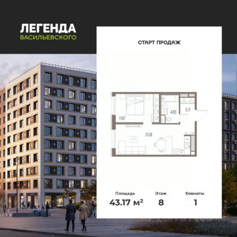 Однокомнатная квартира с предчистовой отделкой в ЖК "ЛЕГЕНДА Васильевского" на 8 этаже. Общая площадь: 36.28 кв.м., жилая: 10.22 кв.м., площадь просторной кухни-столовой: 17.91 кв.м. Все окна выходят на одну сторону. В квартире один совмещенный санузел. Высота потолков 2.7 м. "ЛЕГЕНДА Васильевского" жилой квартал в минутной доступности от Финского залива, главного креативного хаба Санкт-Петербурга Севкабель Порта и других точек притяжения. Современные инженерные и технические решения, повышающие качество жизни TechnoBox включают в себя: стационарный и удаленный контроль дома, систему вентиляции Air Design - здоровое дыхание без лишнего шума, мультисервисную сеть, объединяющую коммуникационные системы, удаленное управление электроприборами, контроль отопления в каждом помещении, поддерживающий оптимальный температурный баланс во время "холодного" периода", датчики протечки, датчик открытия входной двери. Мультисервисная сеть (МСС) объединяет ключевые слаботочные системы дома, задавая им единый высокий стандарт работы, обеспечивая надёжность их функционирования и управления. Квартира готова к декорированию. Застройщиком сделана шумоизоляция; стены подготовлены для отделки; проведена электрика с учетом рекомендаций по расстановке мебели и бытовой техники; выровнен пол. В каждой квартире установлена взломостойкая входная дверь, окна со специальным термоизолированным алюминиевым профилем. Двор жилого комплекса "ЛЕГЕНДА Васильевского" закрыт. Проект состоит из шести разноформатных корпусов с ритмичными фасадами в духе пост-конструктивизма. Геометрия жилого комплекса состоит из четко простроенных осей, чередующих открытые пространства и объемы корпусов, каждый из которых обладает своим визуальным кодом индивидуальным рисунком фасада и цветовой палитрой. Корпуса образуют периметр с общественными пространствами: площадью с кафе, магазинами и пешеходным променадом с детскими игровыми хабами, местами для спокойного отдыха и workout-зоной. На территории комплекса предусмотрены теплый подземный паркинг и два наземных 4-х этажных паркинга.