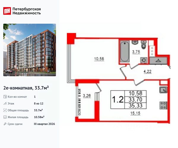 • ✓ В базе Циан 83 1-комнатных квартир на 8 этаже рядом с метро Московская
