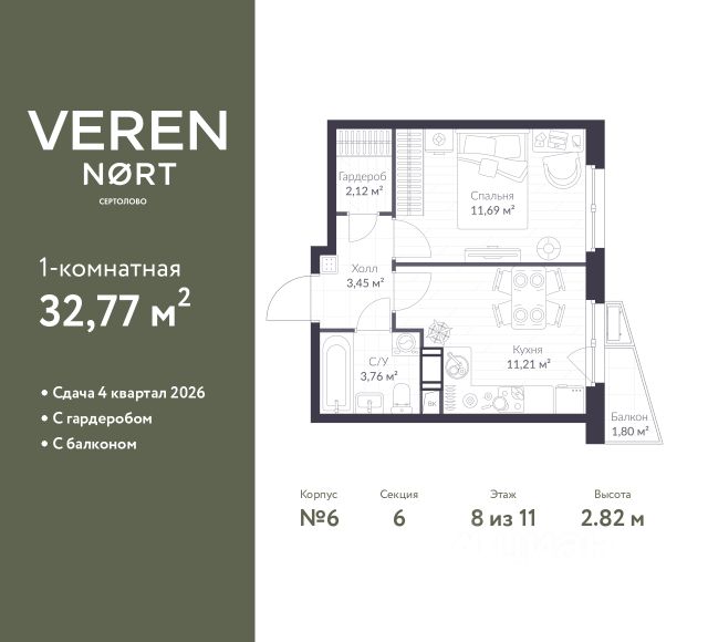 1 - комнатная квартира на 8 этаже общей площадью 30,76 м² в IV очереди в жилом комплексе Сертолово Парк от застройщика ГК Алгоритм. Все квартиры в ЖК Сертолово Парк сдаются с чистовой отделкой в скандинавском стиле. Въезжайте и живите без дополнительных затрат на ремонт. Увеличенные оконные проемы и потолки высотой 2,74 м придают квартирам в ЖК Сертолово Парк ощущение простора, обеспечивая максимальное естественное освещение и свежий воздух. Энергосберегающий дом строится по финским технологиям: наружные стены изготовлены из заводских трехслойных железобетонных панелей толщиной 390 мм, фасады утеплены - толщина утеплителя 150 мм - и закрыты декоративным слоем -толщина 90 мм. Расположение ЖК: идеальное место для комфортной жизни в городе Сертолово. В 200 метрах находится детская и взрослая поликлиники. Вблизи детские сады и школы. ЖК Сертолово Парк окружен прекрасным лесным массивом, что создает уникальную атмосферу спокойствия и природной красоты прямо за порогом вашего дома. Для детей и взрослых на территории ЖК имеются детские и спортивные площадки. Кроме того, чтобы обеспечить безопасность и уединенность, территория жилого комплекса полностью закрыта. 4 закрытых многоуровневых наземных паркингов с грузовым лифтом на 1200 машин.