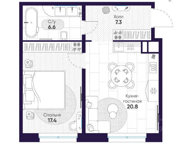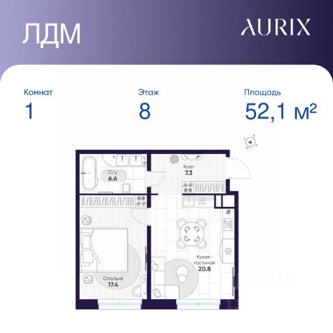 Квартира с одной спальней в комплексе "Сампсониевский 32" от LEGENDA на 8 этаже. -Общая площадь: 43.47 кв.м. -Жилая: 11.73 кв.м. -Площадь просторной кухни-столовой: 22.25 кв.м. -Высота потолков 2.7 м. Все окна выходят на одну сторону. В квартире один раздельный санузел. ЖК "Сампсониевский, 32" квартал бизнес-класса в Выборгском районе Санкт-Петербурга недалеко от набережной Большой Невки и Петроградской стороны. Отличают комплекс каскадные фасады с большой площадью остекления, видовые квартиры с террасами. Современные инженерные и технические решения, повышающие качество жизни TechnoBox включают в себя: стационарный и удаленный контроль дома, систему Air Design, обеспечивающую чистый воздух без лишнего шума, мультисервисную сеть, объединяющую коммуникационные системы. Квартиры сдаются с предчистовой отделкой: выровнены пол и стены, проведена электрика, предусмотрена шумоизоляция, встроенная система вентиляции. В каждой квартире установлена взломостойкая входная дверь, окна со специальным термоизолированным алюминиевым профилем. В ЖК "Сампсониевский, 32" много вариантов планировок: квартиры с террасой, мастер-спальней, ванной комнатой с окном, гардеробной комнатой. Двор закрыт от транспорта, здесь будут зоны с дизайнерским оформлением для игр и отдыха. Срок сдачи 4 квартал 2026 года. В отапливаемом подземном паркинге 298 мест, спуститься туда можно на лифте из своей квартиры. Комплекс находится на границе крупных районов, рядом с набережными, которые ведут в Приморский, Калининский и Центральный районы, а через Сампсониевский, Гренадёрский и Кантемировский мосты можно попасть в Петроградский район. До станции метро "Выборгская" 900 м, до станции метро "Петроградская" 2,6 км. Финляндский вокзал находится в 2,5 км от ЖК, а Западный скоростной диаметр (ЗСД) в 10 км. Рядом с ЖК находится несколько гимназий, общеобразовательных школ и детских садов. Здесь много медицинских учреждений, кафе, ресторанов, торговых центров, гипермаркетов. Меньше чем в 1 км от ЖК Сампсониевский и Выборгский сады, а в 2 км находится Ботанический сад, набережная реки Карповки с качелями и зонами отдыха у воды.