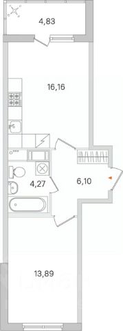 1-91445 Продаем в современном ЖК рядом с метро, уютную 1(одно)комнатную квартиру, тип квартиры 2е: