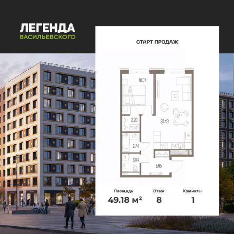 Однокомнатная квартира с предчистовой отделкой в ЖК "ЛЕГЕНДА Васильевского" на 8 этаже. Общая площадь: 36.28 кв.м., жилая: 10.22 кв.м., площадь просторной кухни-столовой: 17.91 кв.м. Все окна выходят на одну сторону. В квартире один совмещенный санузел. Высота потолков 2.7 м. "ЛЕГЕНДА Васильевского" жилой квартал в минутной доступности от Финского залива, главного креативного хаба Санкт-Петербурга Севкабель Порта и других точек притяжения. Современные инженерные и технические решения, повышающие качество жизни TechnoBox включают в себя: стационарный и удаленный контроль дома, систему вентиляции Air Design - здоровое дыхание без лишнего шума, мультисервисную сеть, объединяющую коммуникационные системы, удаленное управление электроприборами, контроль отопления в каждом помещении, поддерживающий оптимальный температурный баланс во время "холодного" периода", датчики протечки, датчик открытия входной двери. Мультисервисная сеть (МСС) объединяет ключевые слаботочные системы дома, задавая им единый высокий стандарт работы, обеспечивая надёжность их функционирования и управления. Квартира готова к декорированию. Застройщиком сделана шумоизоляция; стены подготовлены для отделки; проведена электрика с учетом рекомендаций по расстановке мебели и бытовой техники; выровнен пол. В каждой квартире установлена взломостойкая входная дверь, окна со специальным термоизолированным алюминиевым профилем. Двор жилого комплекса "ЛЕГЕНДА Васильевского" закрыт. Проект состоит из шести разноформатных корпусов с ритмичными фасадами в духе пост-конструктивизма. Геометрия жилого комплекса состоит из четко простроенных осей, чередующих открытые пространства и объемы корпусов, каждый из которых обладает своим визуальным кодом индивидуальным рисунком фасада и цветовой палитрой. Корпуса образуют периметр с общественными пространствами: площадью с кафе, магазинами и пешеходным променадом с детскими игровыми хабами, местами для спокойного отдыха и workout-зоной. На территории комплекса предусмотрены теплый подземный паркинг и два наземных 4-х этажных паркинга.