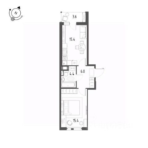 Продается квартира 125, по адресу г. Санкт-Петербург, поселок Шушары, Чудовская улица, дом 14, корпус 1, строение 1, корпус ЖК Монография в Монография на 8 этаже, с площадью 37.3 м2.