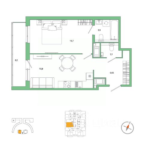 + В пешей доступности продуктовые магазины "ВкусВилл", "Пятерочка", "Магнит", "Перекресток"