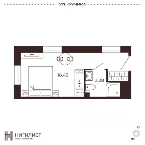 Продуманная и функциональная планировка включает просторную прихожую с отдельной гардеробной, уютную кухню-столовую, оснащённую необходимой современной мебелью и техникой (варочная плита, вытяжка, посудомоечная машина, микроволновая печь, холодильник), полностью меблированную большую спальню с выходом на собственную лоджию — место для отдыха и наслаждения видами города, а также раздельный санузел с ванной, раковиной и стиральной машиной. В квартире выполнен свежий ремонт: на полу уложен качественный ламинат, стены окрашены, установлены радиаторы отопления, прочные межкомнатные двери и дорогие двухкамерные стеклопакеты на окнах.