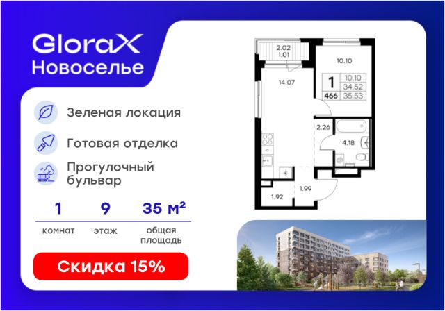 Продаётся 1-комн. квартира площадью 47 кв.м на 9 этаже 12 этажного дома (Корпус 4.1, Секция 1) проекта ПИК Таллинский парк. Светлый просторный подъезд на уровне земли, функциональная планировка, большие окна, без отделки. "Таллинский парк" - проект в Ленинградской области, в районе Новоселье. До станции метро "Проспект Ветеранов" - 15 минут на автомобиле, а до КАД можно доехать всего за 4 минуты. "Таллинский парк" включает 16 жилых домов, детский сад и школу. В проекте появится центральный сквер с обильным озеленением, а через весь квартал протянутся широкие пешеходные бульвары. В зелёных дворах-парках будут оборудованы современные детские и спортивные площадки, обустроены места для отдыха. На первых этажах разместятся магазины, кафе и другие сервисы. Проектом предусмотрены персональные кладовые помещения - это доступный, экономичный и удобный способ хранения сезонных и крупногабаритных вещей. Освободите свою квартиру для полноценной жизни. Район Новоселье активно развивается в городском формате: здесь уже работают детские сады, школа и магазины. Для любителей зимних видов спорта открыта круглосуточная ледовая арена Ice Rink. За покупками и развлечениями также можно быстро доехать: 10 минут - и вы в Аутлете Fashion House Таллинское, гипермаркетах Лента, Леруа Мерлен и Окей. В 10 минутах на автомобиле находится Финский залив, на берегу которого расположились объекты культурного наследия. Рядом - Константиновский парк с отреставрированным дворцом, а чуть дальше расположена усадьба Знаменка. В великолепном Петергофе вы будете уже через 20 минут. Артикул 1026178 (Застройщик ООО "СПЕЦИАЛИЗИРОВАННЫЙ ЗА СТРОЙЩИК "СТРОЙ-ЭКСПЕРТ ") [cn_sbp_1807057]