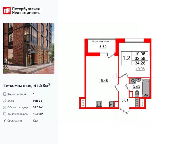 Продаётся 1-комн. квартира площадью 47 кв.м на 9 этаже 12 этажного дома (Корпус 4.1, Секция 1) проекта ПИК Таллинский парк. Светлый просторный подъезд на уровне земли, функциональная планировка, большие окна, без отделки. "Таллинский парк" - проект в Ленинградской области, в районе Новоселье. До станции метро "Проспект Ветеранов" - 15 минут на автомобиле, а до КАД можно доехать всего за 4 минуты. "Таллинский парк" включает 16 жилых домов, детский сад и школу. В проекте появится центральный сквер с обильным озеленением, а через весь квартал протянутся широкие пешеходные бульвары. В зелёных дворах-парках будут оборудованы современные детские и спортивные площадки, обустроены места для отдыха. На первых этажах разместятся магазины, кафе и другие сервисы. Проектом предусмотрены персональные кладовые помещения - это доступный, экономичный и удобный способ хранения сезонных и крупногабаритных вещей. Освободите свою квартиру для полноценной жизни. Район Новоселье активно развивается в городском формате: здесь уже работают детские сады, школа и магазины. Для любителей зимних видов спорта открыта круглосуточная ледовая арена Ice Rink. За покупками и развлечениями также можно быстро доехать: 10 минут - и вы в Аутлете Fashion House Таллинское, гипермаркетах Лента, Леруа Мерлен и Окей. В 10 минутах на автомобиле находится Финский залив, на берегу которого расположились объекты культурного наследия. Рядом - Константиновский парк с отреставрированным дворцом, а чуть дальше расположена усадьба Знаменка. В великолепном Петергофе вы будете уже через 20 минут. Артикул 1026178 (Застройщик ООО "СПЕЦИАЛИЗИРОВАННЫЙ ЗА СТРОЙЩИК "СТРОЙ-ЭКСПЕРТ ") [cn_sbp_1807057]
