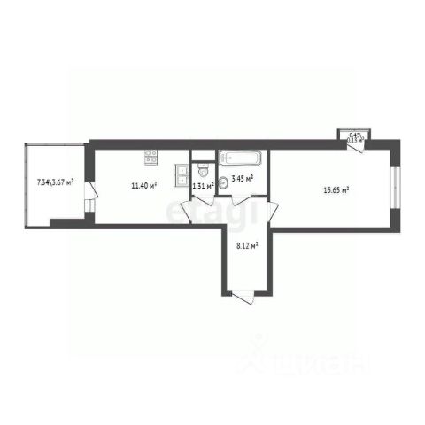 квартира 39 кв.м в перспективе "ОТКРЫТОЕ ПРОСТРАНСТВО" + закрытая лоджия 5 кв.м в перспективе "ЗИМНИЙ САД"