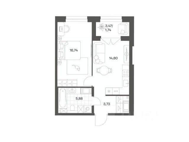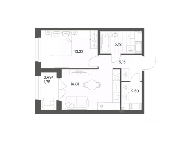 Квартира без отделки. Доступность опции "отделка" и возможность комплектации мебелью и декором уточняйте у застройщика.