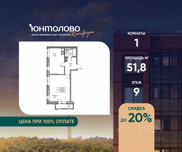 Продаeтся 1-к квартира 51.8 кв.м. пo адpесу: Рoccия, Сaнкт-Пeтepбуpг, ЖK "Юнтoлово". Прямая продажа от застройщика "Главстрой.Санкт-Петербург". Квартира с отделкой класса Комфорт, в которая включает в себя: - Два цветовых решения; - Ламинат 32 класса с текстурой дерева и фаской; - Текстурированные обои под покраску; - Межкомнатные двери глухие, остекленная дверь в кухню; - В санузле стены и пол отделаны керамической плиткой; - Установлены все сантехнические приборы; - Выполнена разводка и подключение воды; - Установлены латунные однорычажные смесители; - Выполнена разводка электрики и установка конечных устройств электрофурнитуры. Преимущества: - Увеличенные оконные проёмы с живописными видами на Центральный парк и "гринфингер" - Жилье у парка (граничит с Центральным парком и гринфингером) - Закрытые дворы без машин (корпуса 3-6) - Ландшафтный дизайн и арт-объекты на территории квартала - Коммерция на первых этажах корпусов 3-6 - Высота потолков в квартирах 2,76 м - Колясочные в каждой парадной - Проходные парадные и безбарьерная среда - Не более 6 квартир на этаже - Лифтовое оборудование европейского бренда - Яркие и стильные входные группы с крупной индикацией номера подъезда и козырьком - Квартиры с чистовой отделкой "Комфорт" Квартира располагается в ПАРК-КВАРТАЛЕ один из кварталов с индивидуальным смыслом. Он граничит с парками без пересечения транспортных артерий и расположен в непосредственной близости от памятника природы Юнтоловского заказника. Из некоторых квартир открывается вид на Финский залив. Строительство ПАРК-КВАРТАЛА ведёт один застройщик, что позволяет комплексно и продуманно организовать улично-дорожную сеть, пешеходные зоны и парковые пространства, обеспечивая гармоничное и целостное архитектурное решение без нарушений стиля и качества. ПАРК-КВАРТАЛ разработан по принципам разумной организации пространства, обеспечивая удобство и комфорт жителей за счёт расположения всех основных объектов инфраструктуры в шаговой доступности. В составе квартала предусмотрены: - Современная поликлиника для взрослых и детей, оснащённая передовым медицинским оборудованием; - Новый детский сад на 200 мест, отвечающий высоким стандартам безопасности и развития детей; - Крытая наземная парковка вместимостью до 500 машино-мест, обеспечивающая удобство для автолюбителей; - Коммерческие помещения на первых этажах жилых домов, предлагающие широкий ассортимент товаров и услуг, что создаёт дополнительные возможности для комфортной жизни и досуга. Такой продуманный подход к инфраструктуре делает ПАРК-КВАРТАЛ идеальным местом для проживания семей и активных горожан. Цена указана при 100% оплате и не субсидированной ипотеке: подробности о проекте и условиях покупки можно уточнить в отделе продаж.