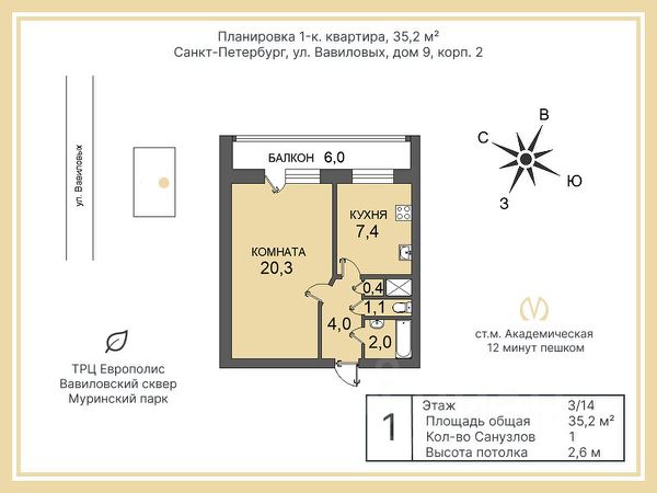 - Пешком до метро — 20 минут (если медленно и с булочкой), на транспорте — 6 минут.