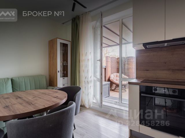 Высокие потолки (3,25 м) и панорамные окна наполняют пространство светом, а просторная терраса (11,2 кв. м) с гранитным покрытием и литыми коваными решетками открывает вид на закаты и тихий двор.