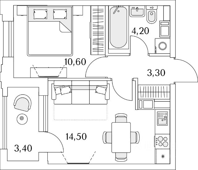 Комната 17,6 кв.м--Кухня 12,7 кв.м--Лоджия 3,2 кв.м,