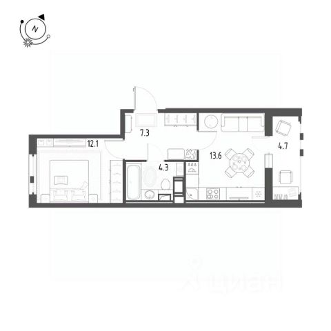 Продаём УЮТНУЮ 1 комнатную квартиру с ЭРГОНОМИЧНОЙ планировкой и ЧИСТОЙ юридической историей в жилом комплексе "ЛЕНСОВЕТОВСКИЙ".