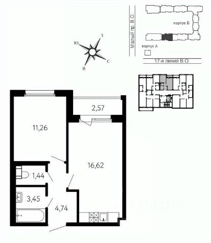 Просторная 1-комн. квартира в Клубный квартал "Ассамблея" на 9 этаже. Квартира без отделки, полностью готова к чистовой отделке и дальнейшему ремонту. Общая площадь: 46.54 кв.м., жилая: 13.85 кв.м., площадь просторной кухни-столовой: 21.16 кв.м. Все окна выходят на одну сторону. В квартире одна лоджия, один совмещенный санузел. Высота потолков 3.0 м.
