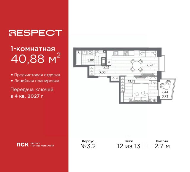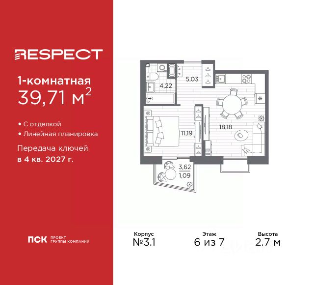 Однокомнатная квартира с предчистовой отделкой в ЖК "RESPECT" на 3 этаже. Общая площадь: 39.48 кв.м., жилая: 11.04 кв.м., площадь просторной кухни-столовой: 18.61 кв.м. Все окна выходят на одну сторону. В квартире один балкон, один совмещенный санузел. Высота потолков 2.7 м. Квартира находится в корпусе 2. Дом монолитный, одноподъездный, высотой 7 этажей. На этаже 4 квартиры. В подъезде 1 пассажирский и 1 грузовой лифт. Окончание строительства - 1 квартал 2026 года. Оформление сделки по договору долевого участия. В шаговой доступности от жилого комплекса находятся станции метро (расстояние по прямой): "Лесная" (800 м), "Площадь Мужества" (1.4 км), "Выборгская" (1.9 км), также недалеко от этого корпуса расположены станции метро: "Академическая", "Политехническая". Квартал строится на Полюстровском пр, 87, в одной из самых востребованных локаций Петербурга. В 10 минутах пешком - метро "Лесная" и в 10 минутах на транспорте - Петроградская сторона. Высота домов от 7 до 13 этажей. На территории Respect строится школа на 1125 учащихся и детский сад на 240 мест. Запроектированы собственная газовая котельная, закрытая территория, дворы без машин и подземные паркинги с лифтами. Вентилируемые фасады облицованы клинкерным кирпичом. Дома из этого материала служат веками, являясь гордостью хозяев. Дизайн парадных зон и входных групп - сочетание лаконичности отделки и декоративных элементов с текстурами из натурального камня и дерева с приглушенной подсветкой теплым светом. Во входных группах расположены гостевые зоны с мягкой мебелью. Вся территория квартала будет связана единой концепцией благоустройства, разработанной ландшафтным бюро L.BURO. В основе - идея создания увлекательного ландшафтного пространства для насыщенной жизни, включающего в себя пейзажные зоны, современные архитектурные композиции, открытые террасы на стилобатах с зонами отдыха и парклетами, спортивными площадками. Это пространство для людей всех возрастов и различных увлечений. На эксплуатируемой кровле на уровне первого этажа в домах 1 и 4 будут обустроены общественные видовые террасы. В квартале запроектированы внутренние закрытые территории дворов домов без доступа автомобилей и безбарьерная среда для велосипедистов и колясок. Предусмотрены IP-домофония с функцией дистанционного открывания калиток и парадных, а также дистанционный сбор показаний счетчиков и мобильное приложение для жителей. Для безопасности жителей квартала - круглосуточное видеонаблюдение и служба охраны. В каждой квартире предусмотрены внешние корзины для кондиционеров. #ZmBAa8 Цены на евродвушку в новостройке в районе Калининский в Санкт-Петербурге.