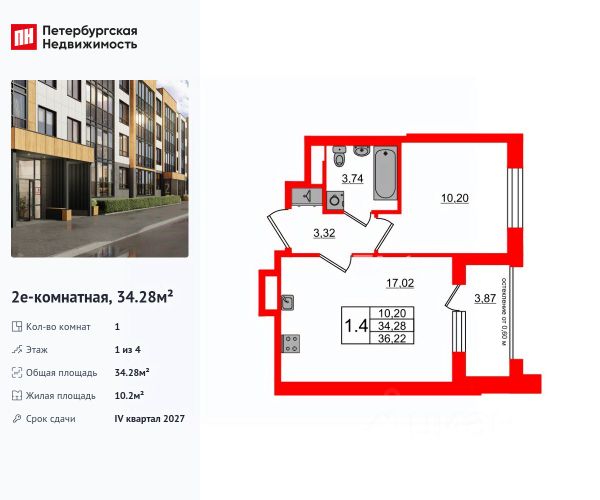 Представляем вашему вниманию привлекательное предложение однокомнатную квартиру площадью 34,9 кв.м. в динамично развивающемся поселке Шушары, по адресу Московское шоссе, 329к1.