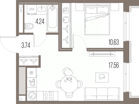 Уникальная, функциональная европланировка, большая кухня-гостиная 17,54 м², вместительная прихожая 5,12 м².