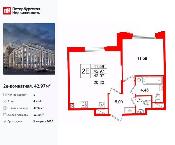 Продается просторная 1-комнатная квартира от застройщика в жилом комплексе "Кристалл Холл" в Адмиралтейском районе. До метро можно добраться пешком всего за 15 минут. Удобная, классическая, функциональная европланировка, большая кухня-гостиная 20.2 м², просторная прихожая 5 м². Общая площадь квартиры - 42.97 м², жилая 11.59 м², высота потолка 3 м. Квартира продается с отделкой "Норд Лайн бизнес". Что особенного в ЖК "Кристалл Холл"? • 300 м. до наб. Фонтанки, в двух шагах от Троицкого собора и Юсуповского дворца. • Сочетание стилей модерн и эклектика, дополненных элементами классического петербургского стиля. • Клубный дом премиум-класса - всего 236 квартир. • Парадное лобби с потолком до 6,5 м и лаунж-зоной с камином. • Камерный сад, зеленая гостиная, фонтан. • Клуб резидентов: кинотеатр, бильярдная комната, переговорная, детский клуб, фитнес-зал с комнатой для йоги. • Потолки от 3 м до 3,45 м. • Премиальная отделка квартир - Норд Лайн бизнес