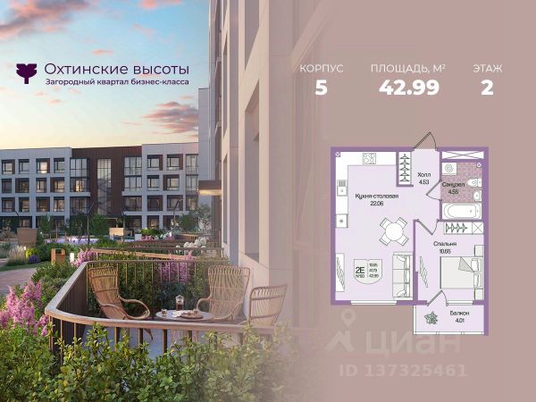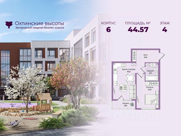 Продаётся 1-комнатная квартира в строящемся доме (Корпус 8.1), срок сдачи: II-кв. 2026, общей площадью 45.53 кв.м., на 1 этаже. ЖК расположен в Сертолово, мкр.Черная речка. 25 минут на машине до метро Парнас, либо 30 минут до метро Пр.Просвещения.