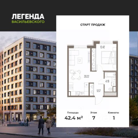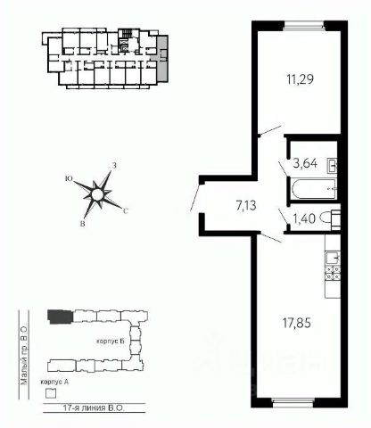 просторная кухня-гостиная 17,6 м² — сердце квартиры, где легко разместится обеденная зона, диван, медиа-зона;