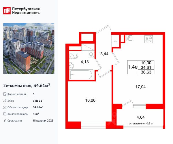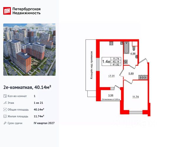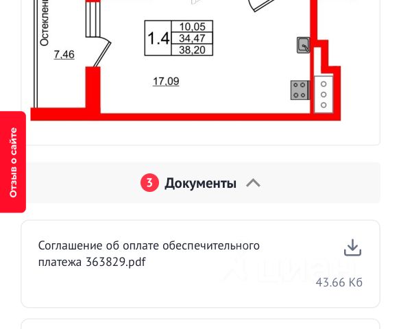 лоджия 7,63 кв. м. (лоджия не входит в общую площадь и стоимость, и идёт как подарок от застройщика).