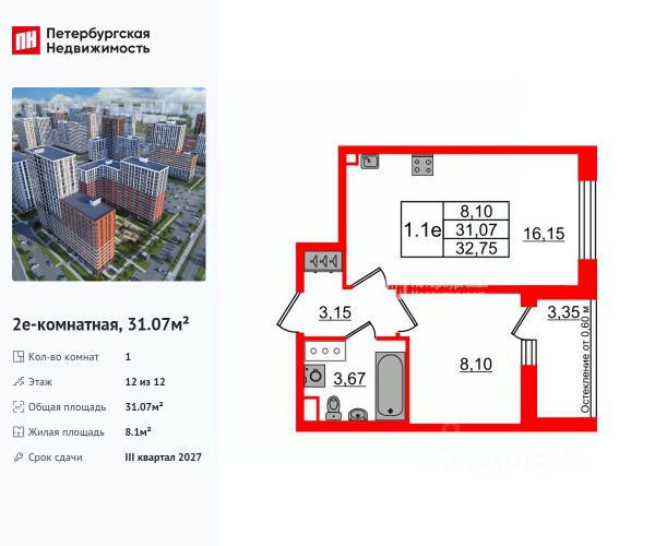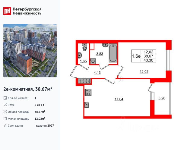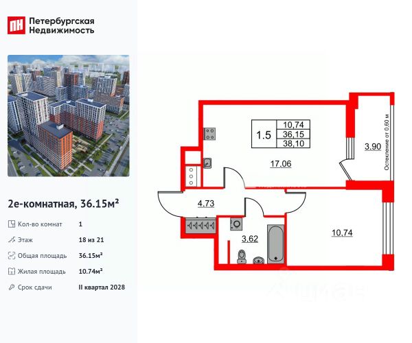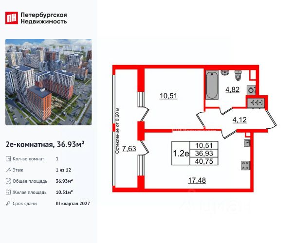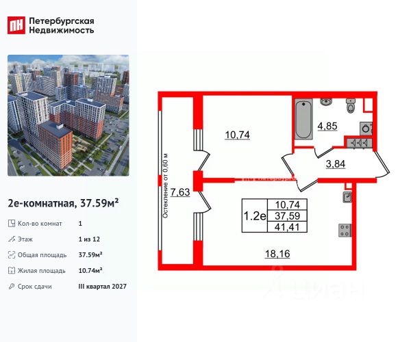 Комната 10.83 кв. м. , кухня 18.12 кв. м, прихожая 4.02 кв. м. , санузел 4,15 кв. м.,